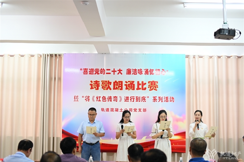 廉潔歌頌著中華民族的團結與富強,廉潔讓共和國的大廈永遠屹立東方,廉潔讓人民群眾對我們充滿期望……”9月23日,在軌道混凝土有限公司黨員之家舉辦的“喜迎黨的二十大 廉潔詠誦憶初心”詩歌朗誦比賽現(xiàn)場,軌道混凝土公司綜合辦參賽隊精神飽滿、聲情并茂地朗誦著韻律優(yōu)美的廉潔詩文,充滿激情的朗誦引得觀眾不時發(fā)出陣陣掌聲,令人心情澎湃。