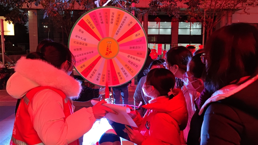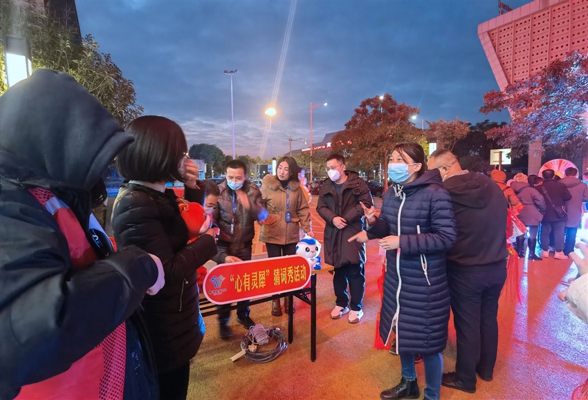 紅火的燈籠掛在枝頭,濃濃的年味已在廣場上蔓延,燈籠上懸掛有節(jié)日燈謎以及黨的二十大知識、民族團(tuán)結(jié)知識、廉潔知識、垃圾分類知識、安全生產(chǎn)知識的題目。大家三五成群看謎面、猜謎語,沉浸在猜謎解謎的樂趣中。這種寓教于樂的方式,充分調(diào)動了大家學(xué)習(xí)的興趣,大大提高了黨員教育的實(shí)際成效。