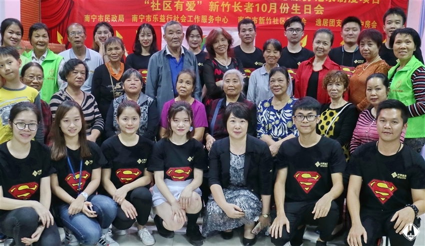 "祝你生日快樂(lè)!祝你生日快樂(lè)!" 祝福的歌聲和掌聲不斷響起來(lái)。2017 11 1 日下午,在青秀區(qū)新竹社區(qū),十幾個(gè)老人聚在社區(qū)的一間活動(dòng)室里,參加 "社區(qū)有愛(ài)"新竹社區(qū)長(zhǎng)者 10 月份生日會(huì),一起慶祝生日。本次關(guān)愛(ài)社區(qū)老人公益活動(dòng)由南寧市樂(lè)益行社會(huì)工作服務(wù)中心、新竹社區(qū)居委會(huì)和逸居公司團(tuán)支部、中房會(huì)等聯(lián)合舉辦。